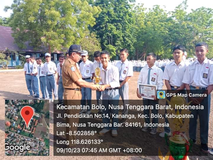 Senin (09/10/23), Upacara bendera dirangkaikan dengan penyerahan piala Juara 1 & Juara 3 Kejuaraan Futsal STKIP HABI antar pelajar Se-Kecamatan Bolo, Madapangga, Soromandi & Donggo kepada sekolah & diterima oleh Kepala Sekolah H.Suratman.SH.M.Pd.